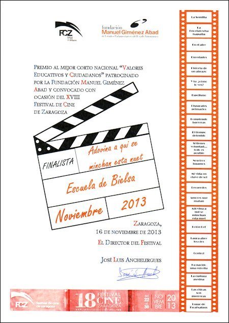 Aquí van unas fotos d’es diplomas de finalistas en el Festival de cine de Zaragoza. ¡Norabuena a’s borches! Agora nos queda asperar a viyer el fallo del churau…