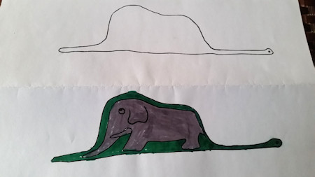Nuestros dibujos no son sombreros…son serpientes boas que se han tragado los más diversos objetos: lápices, rascacielos, niños….estas serpientes sí que dan miedo…
